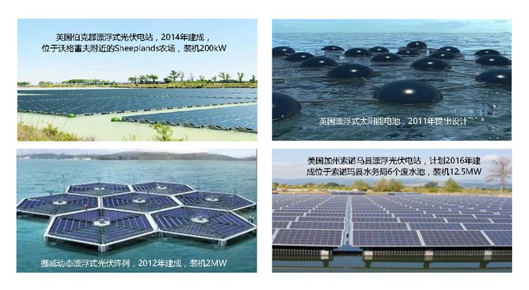 另外:印度、韓國(guó)、新加坡、英國(guó)、挪威、美國(guó)、巴西、澳大利亞等國(guó)家均有水上漂浮電站在建或建成項(xiàng)目。