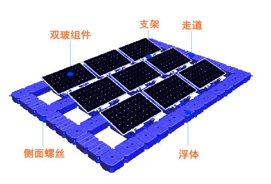 漂浮式水上光伏發(fā)電系統(tǒng)是指在水塘、小型湖泊、水庫(kù)、蓄水池等水上建立漂浮式光伏電站,以解決傳統(tǒng)光伏發(fā)電占地面積大的問(wèn)題。將光伏發(fā)電組件固定在浮體上。浮筒、浮箱由高密度聚乙烯制成。專業(yè)的結(jié)構(gòu)設(shè)計(jì)在確保系統(tǒng)強(qiáng)度前提下,優(yōu)化浮體結(jié)構(gòu),簡(jiǎn)便的拼接設(shè)計(jì),有效地提高了工程安裝的時(shí)效,大大降低了安裝成本。